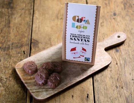 Organic milk chocolate* containing cocoa solids 37% minimum and milk solids 21% minimum (sugar*, cocoa butter,* whole milk powder*, cocoa mass*, vanilla powder*). Made in a factory that handles gluten, egg & nuts.